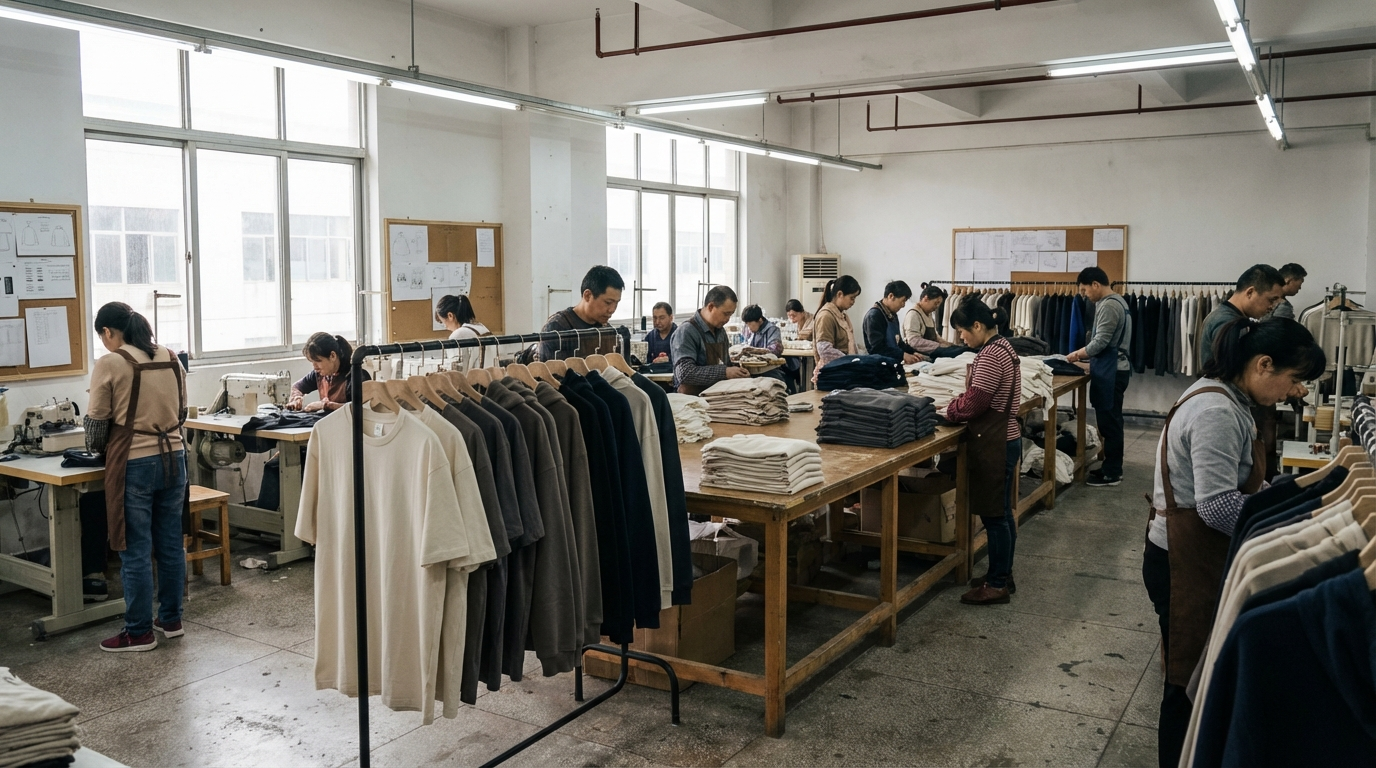A dedicated sweatshirt manufacturer in China producing 400gsm brushed fleece, French terry, double-layered hoods, and custom kangaroo pocket dimensions.